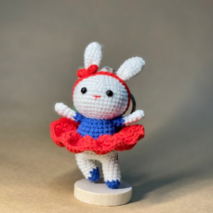 Bunny keychain wearing dress and bow